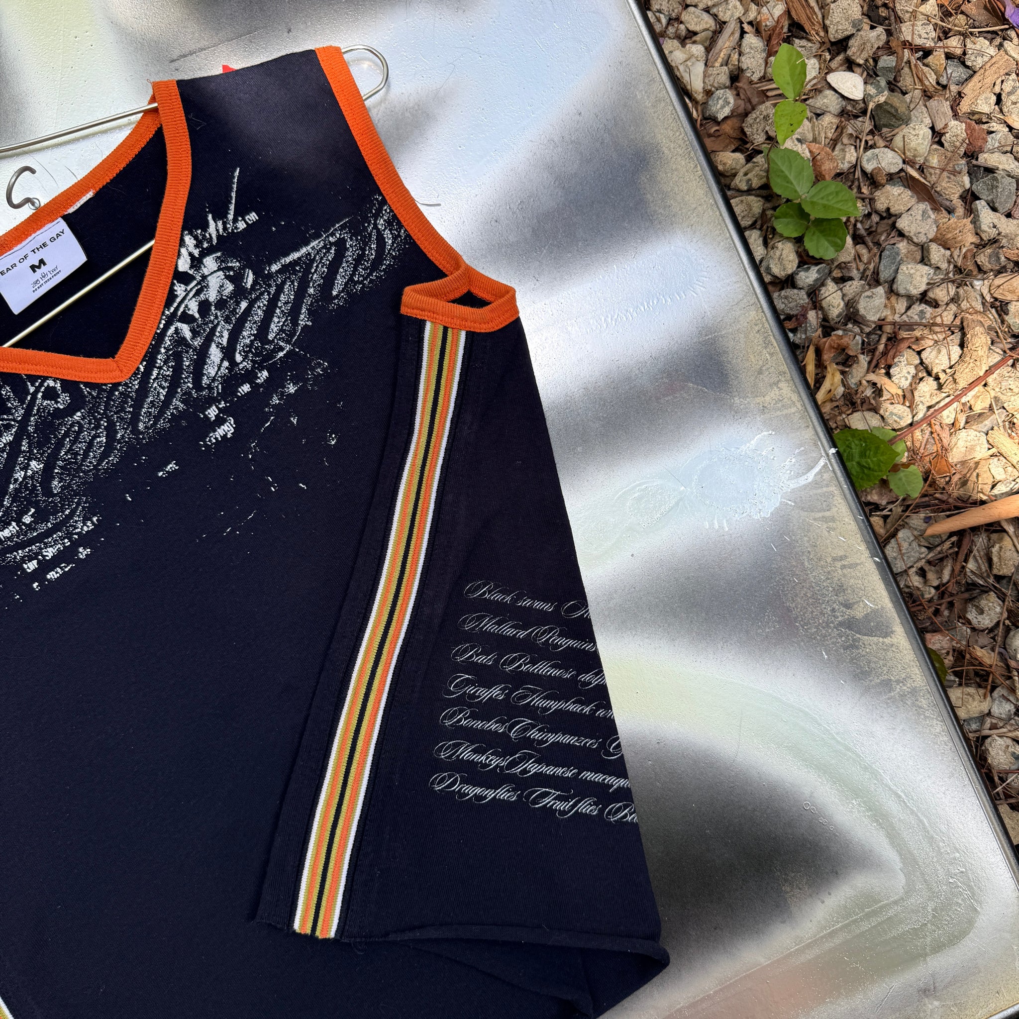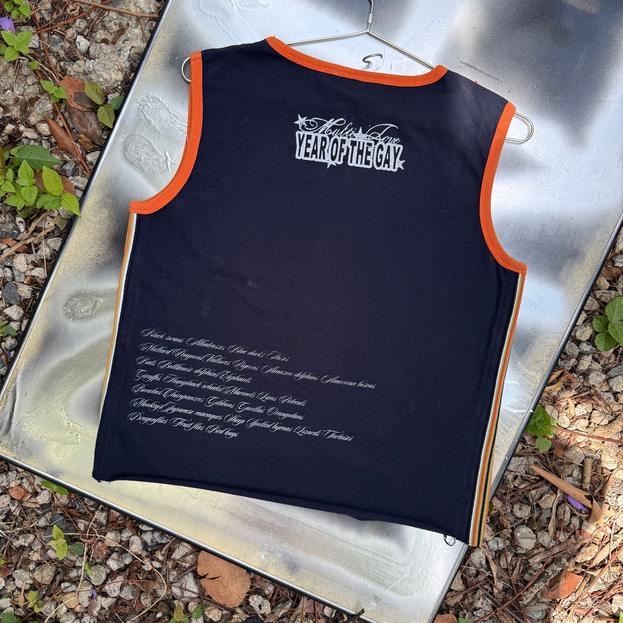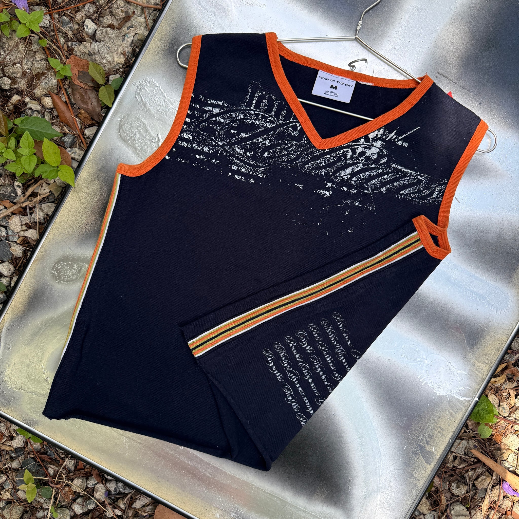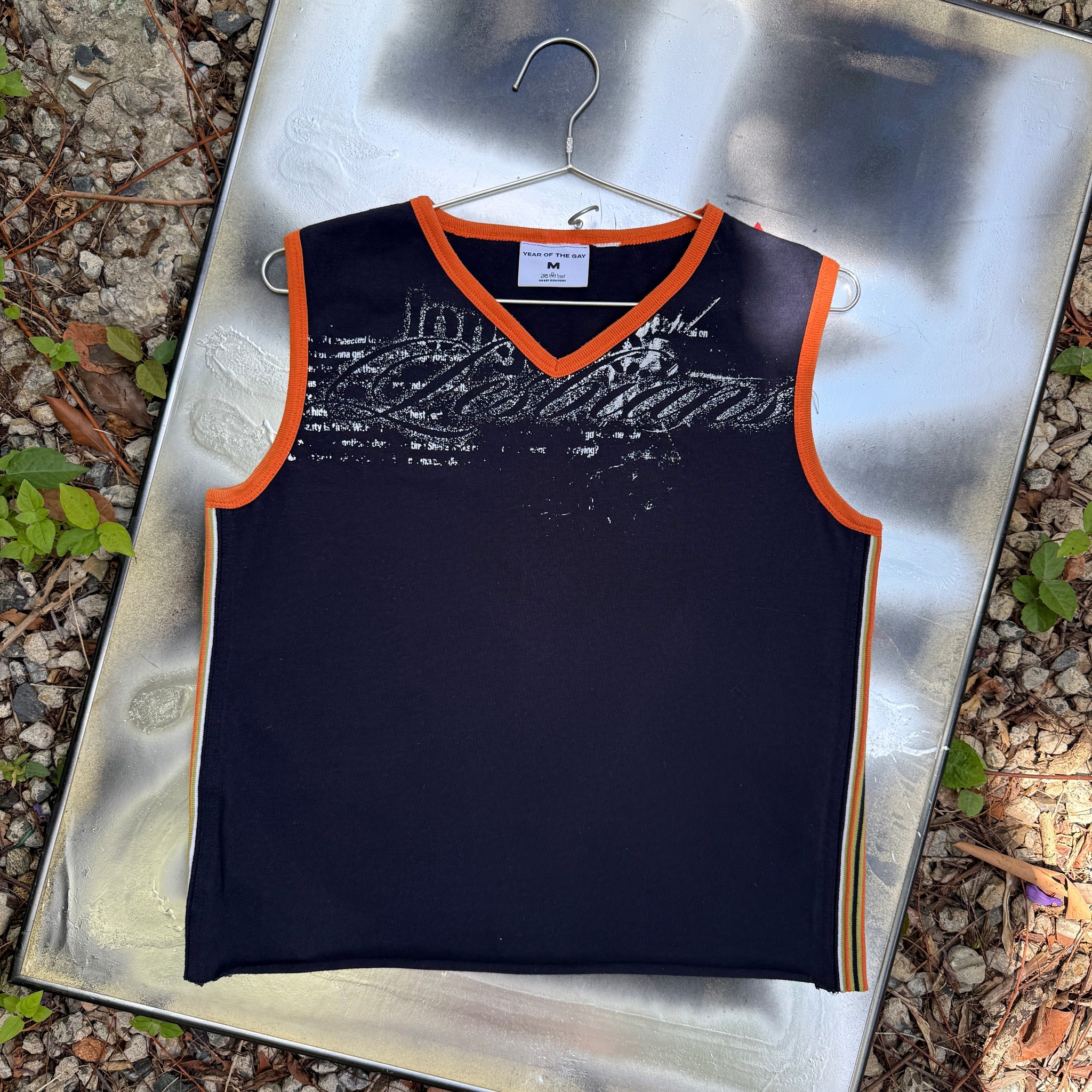 thrifted 2000's target V neck vest navy with orange trim as well as orange, green and white trim down the sidesmade from 100% cotton