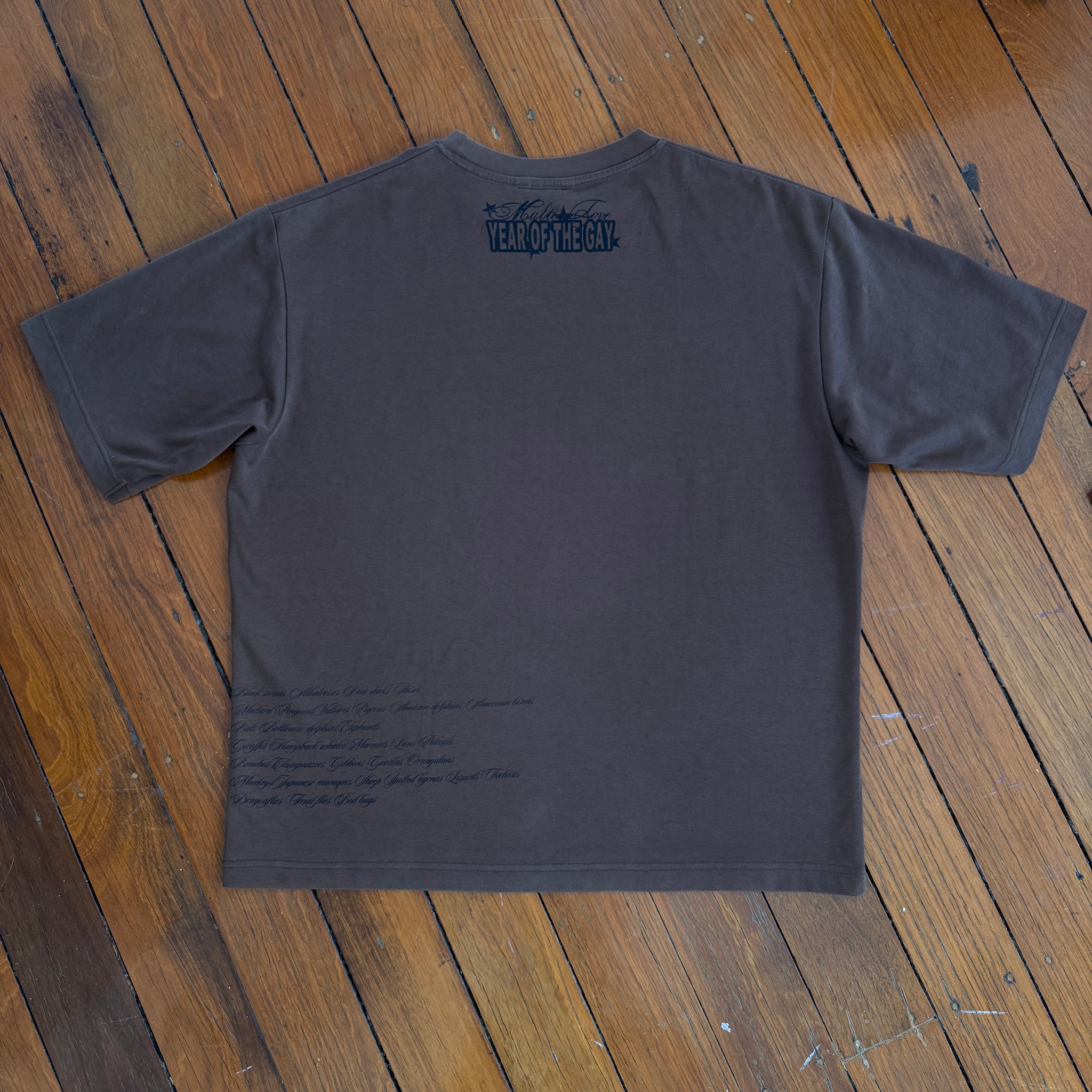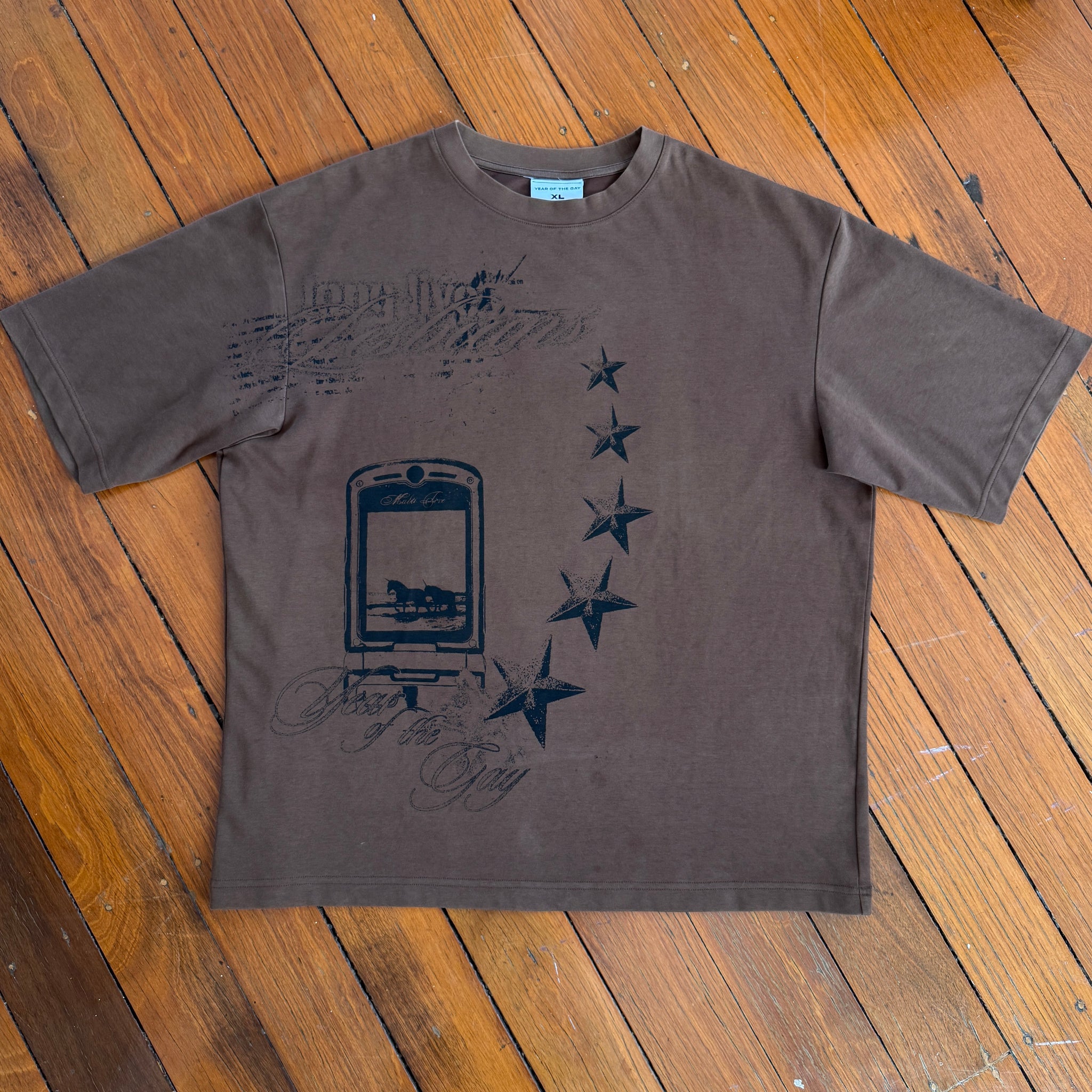thrifted Uniqlo boxy dark brown t-shirtmade from 53% cotton and 47% polyester SCREENPRINTED BY MULTI-LOVESIZE: XL