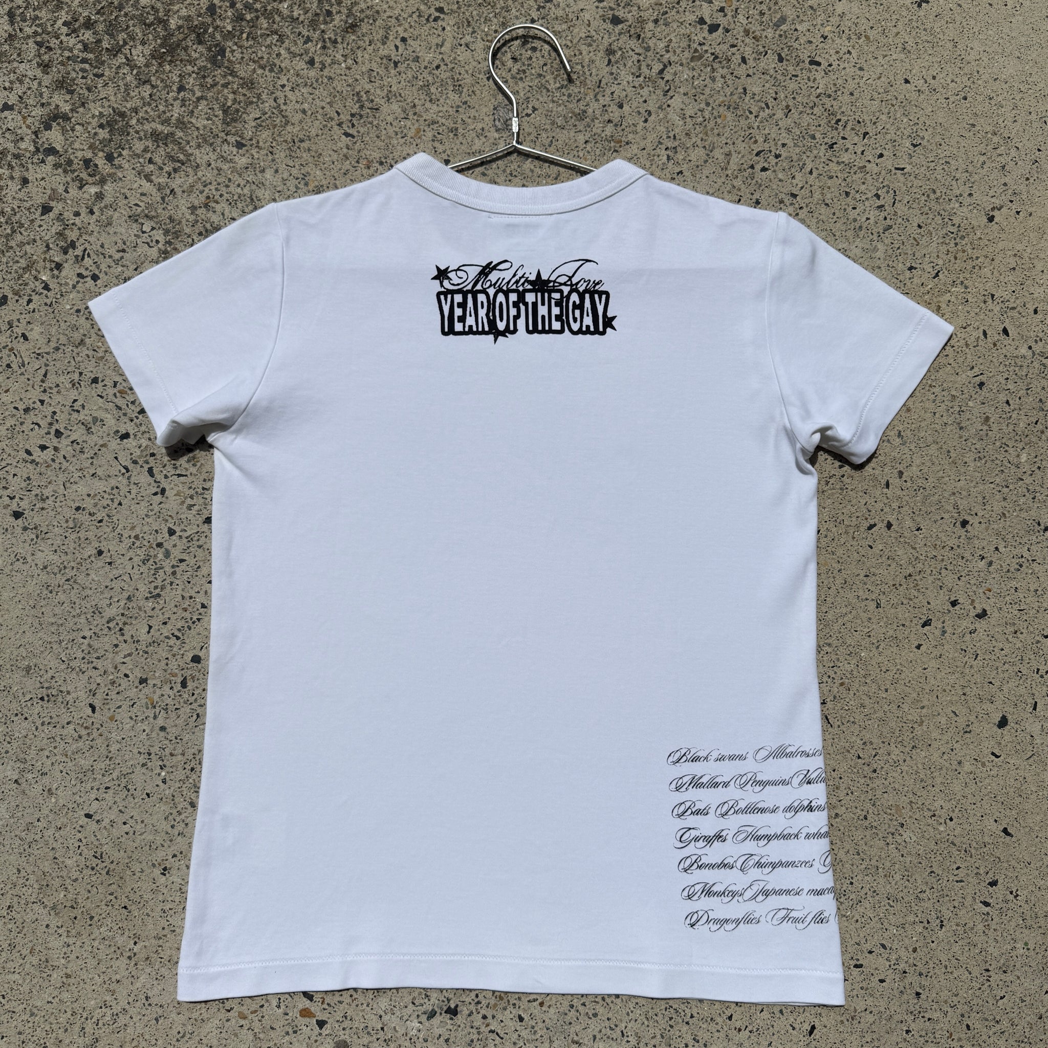 thrifted white Uniqlo baby tee made out of 100% cotton